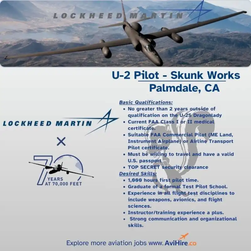 Skunk Works is hiring a U-2 Pilot with Top Secret clearance